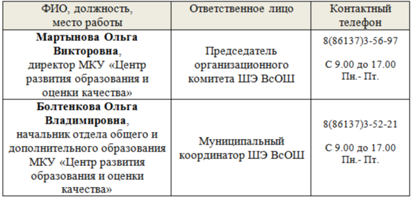 Контактные телефоны ответственных за проведение школьного этапа всероссийской олимпиады школьников в 2025-2026 учебном году